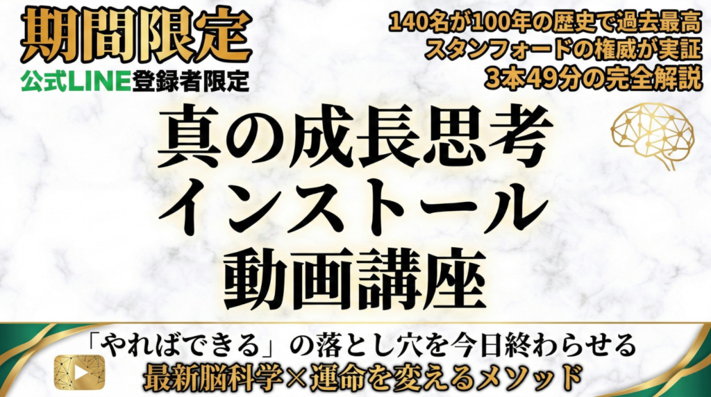 ダイエット・キャリア・人間関係・学業——領域を問わず、脳の仕組みを知ることで現実を変えてきた人たちが学んだ内容です。スタンフォードの権威が証明した神経可塑性、成長思考の真髄を計49分でお届けします。